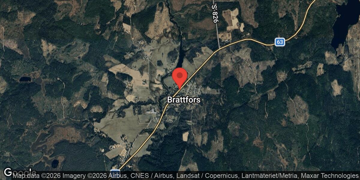 Ett nedfallet träd blockerar väg 63 mellan Brattfors kyrka och Brattfors, med liten påverkan på trafiken. Åtgärder pågår och beräknas vara klara vid 19:30.